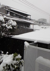 深夜から降り始めた雪が