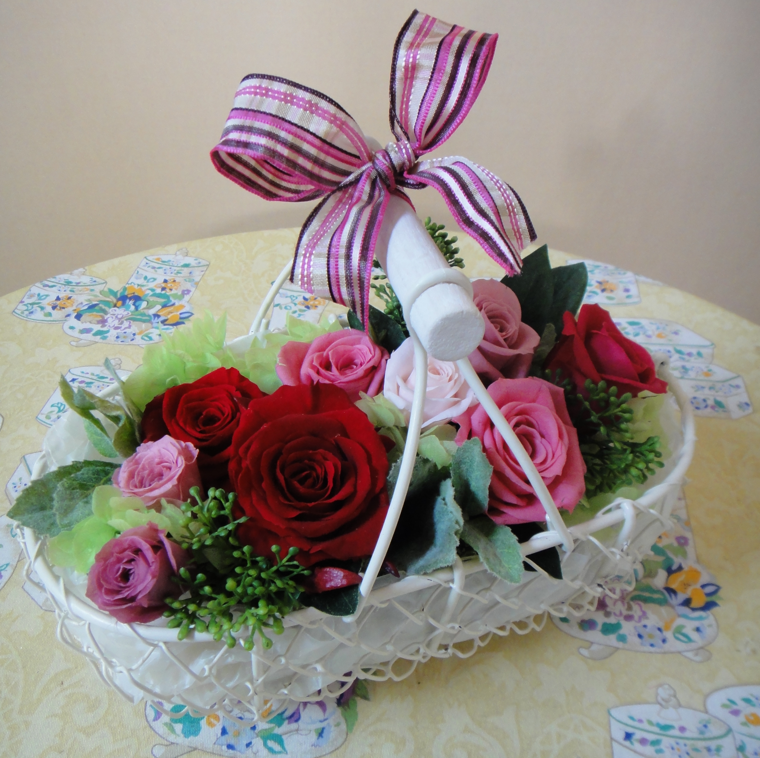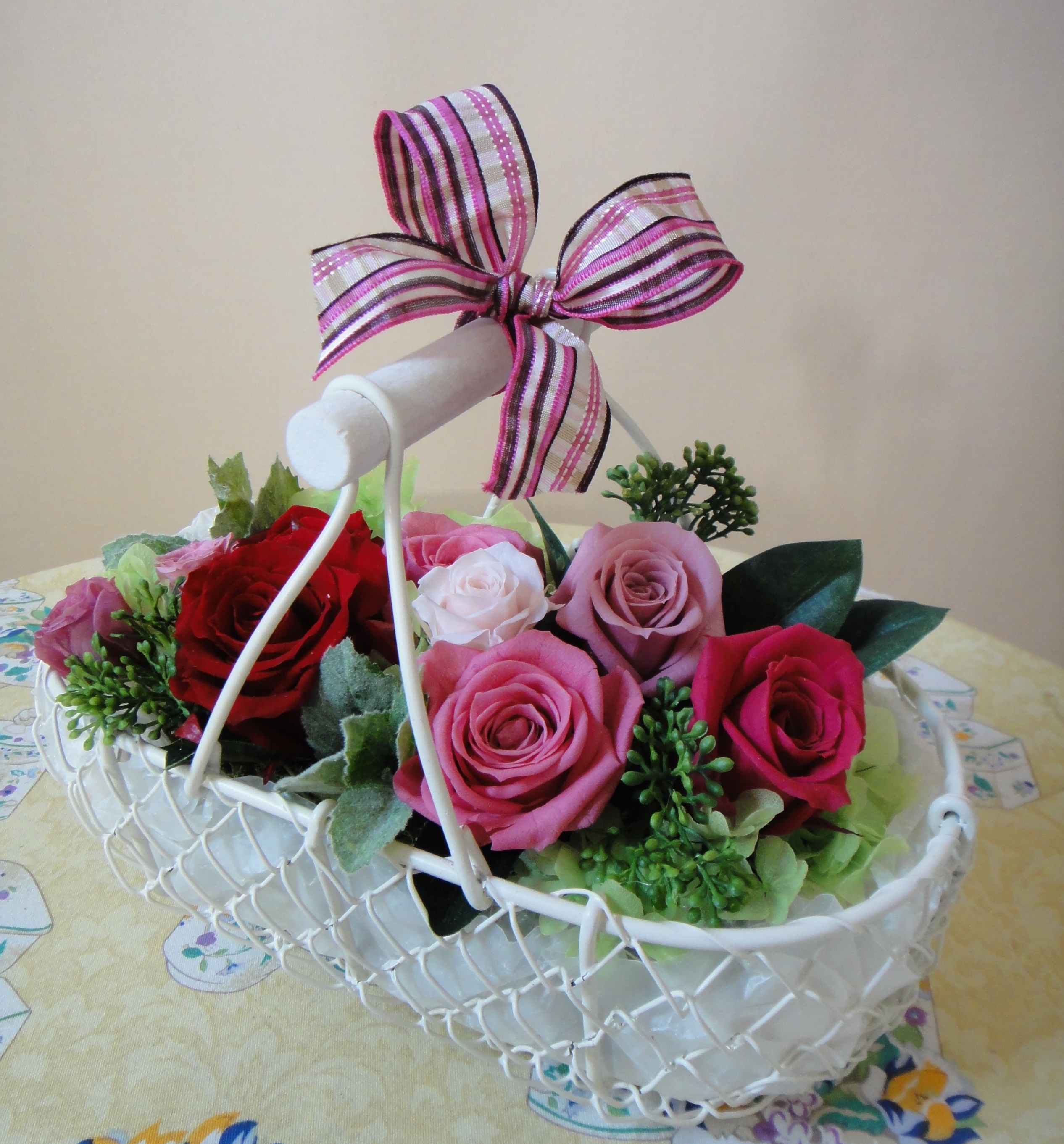 プリザーブドフラワーのバスケットアレンジです☆