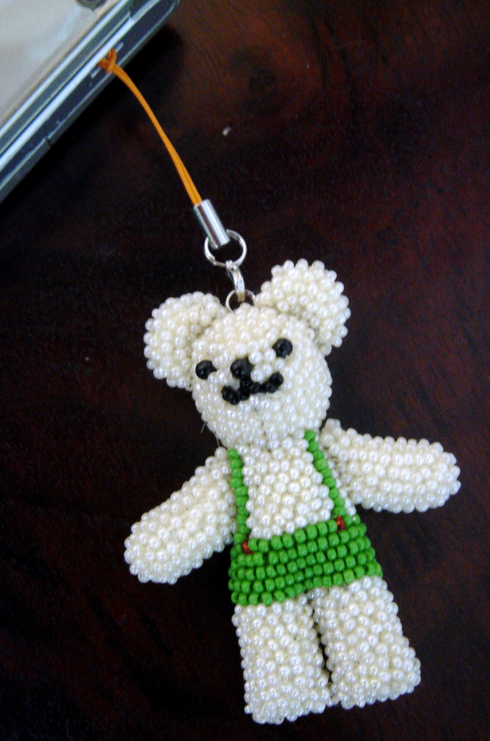 年季の入った私の携帯電話の横に いつも一緒にいた みどりパンツのくま君☆