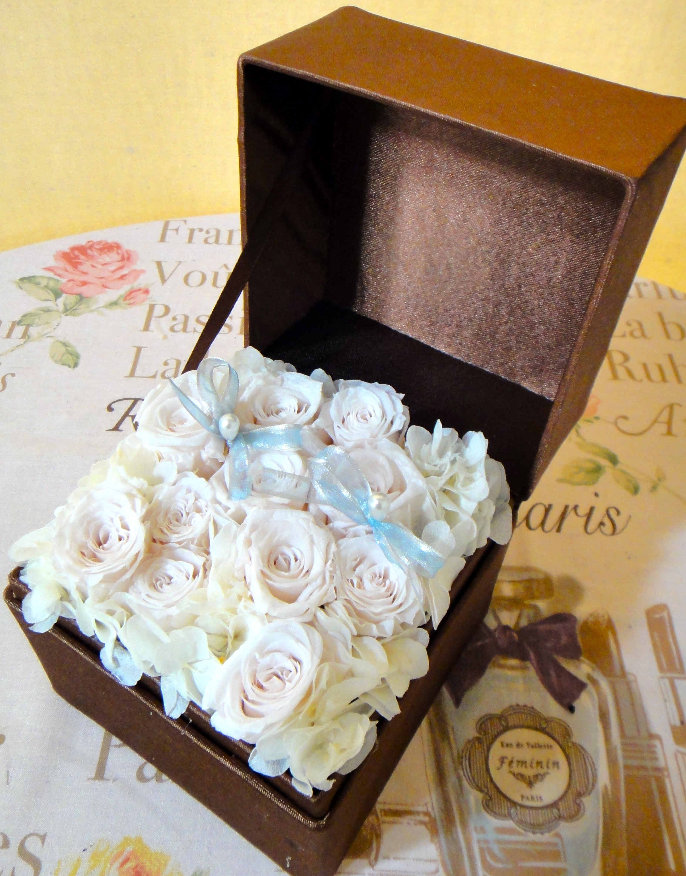彼女のイメージのやさしい色のバラを選びました。