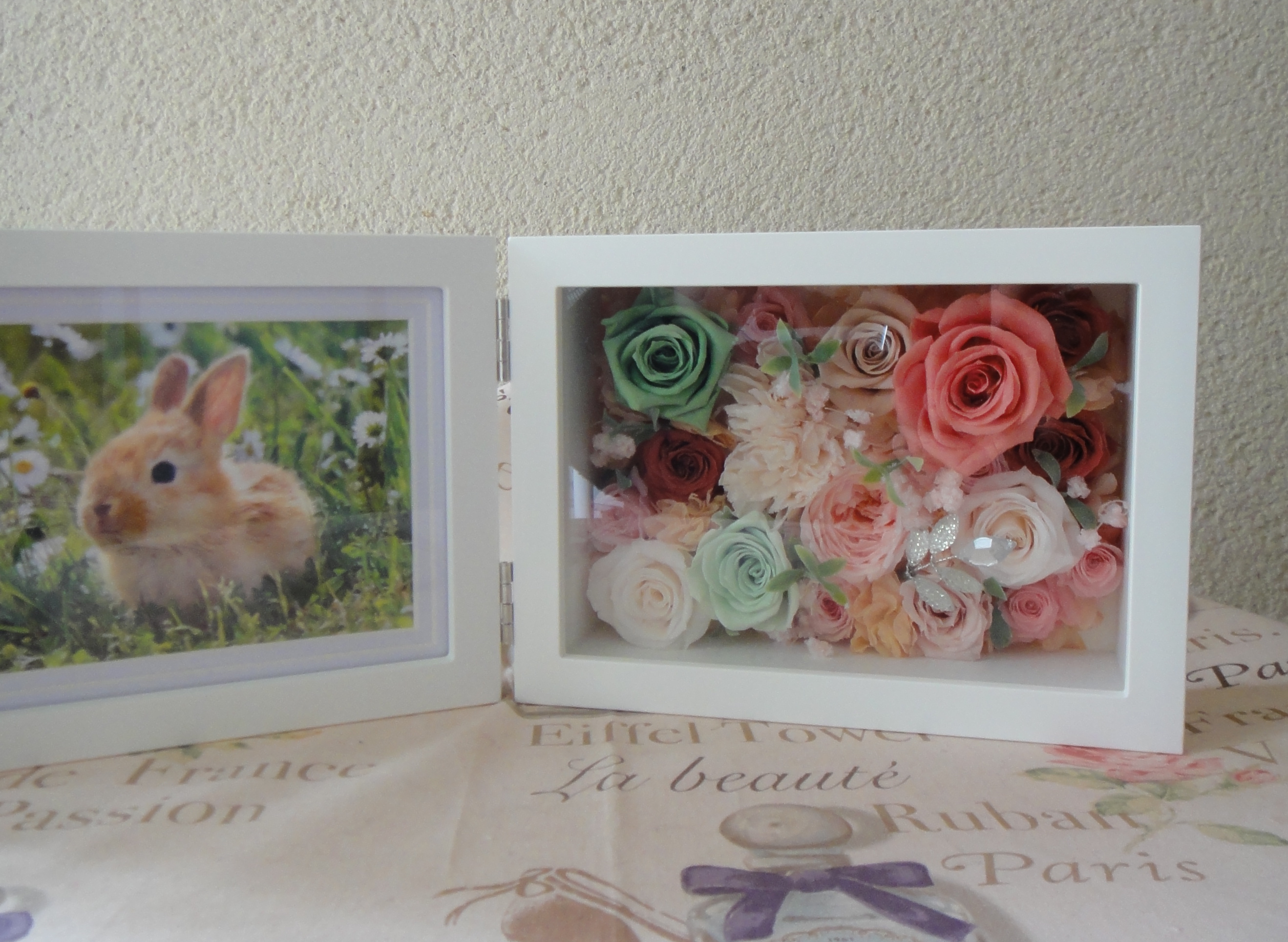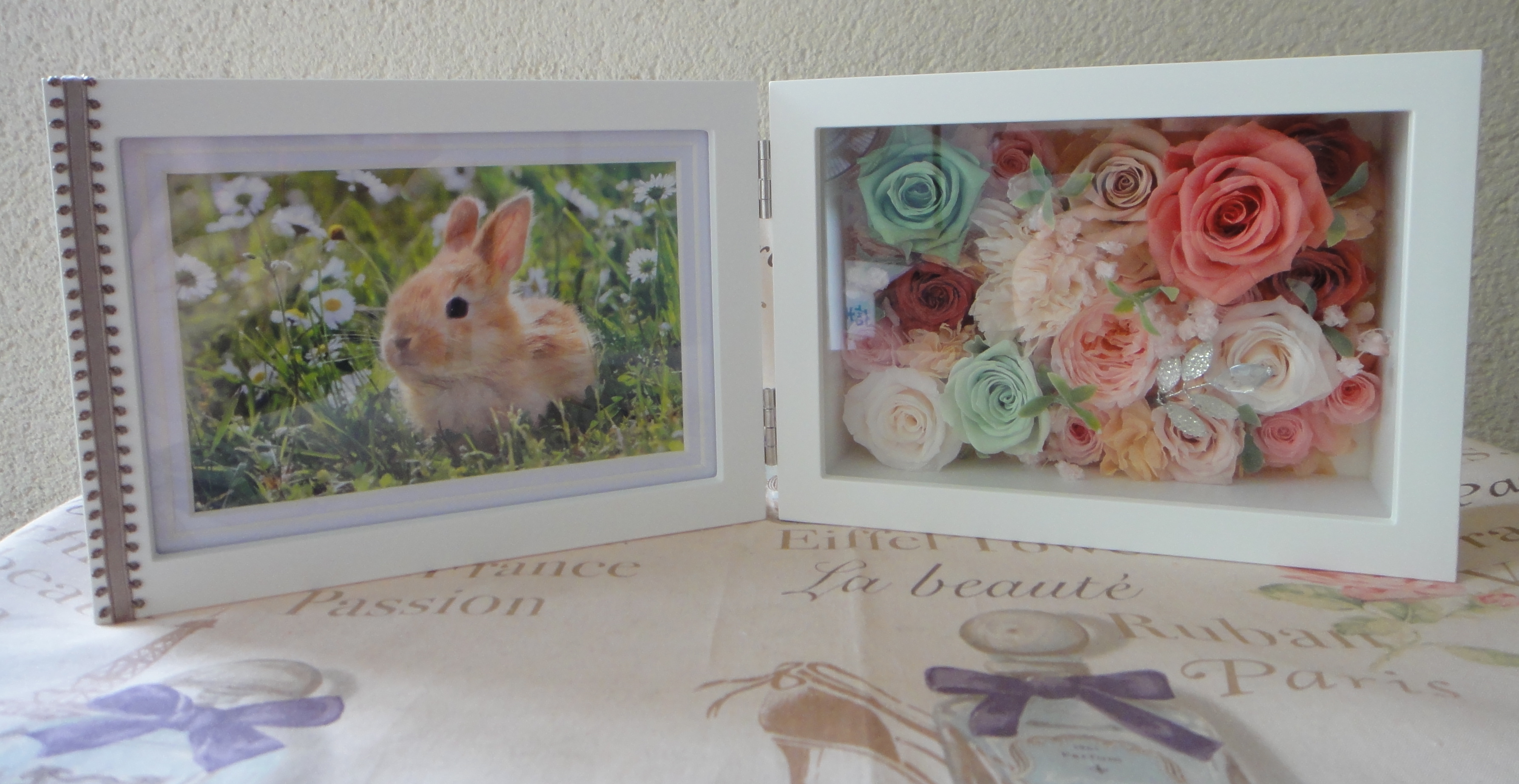 フォトフレーム付きのアレンジメントのご注文です。