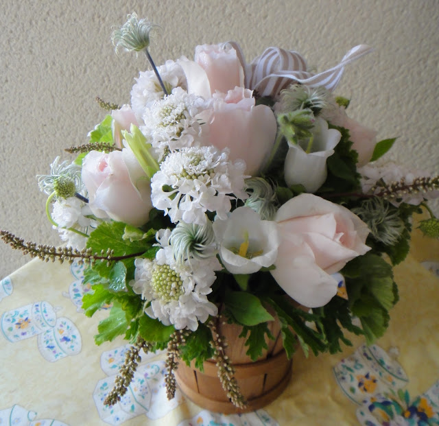 柔らかいお色のお花を選んで アレンジいたしました☆
