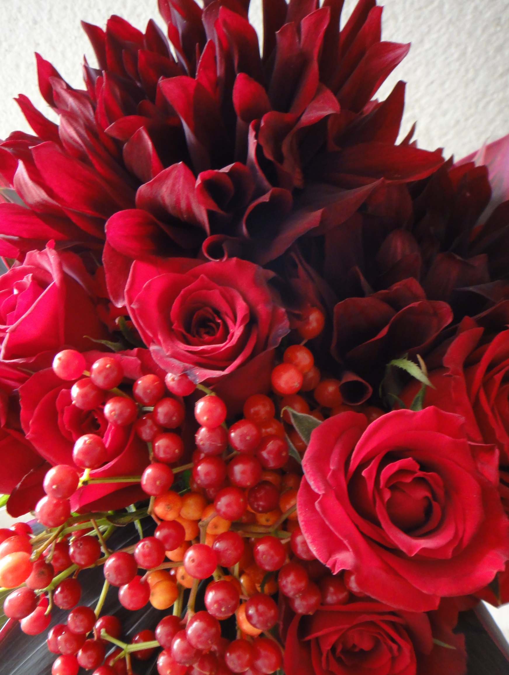 クリスマスカラーの赤いお花のブーケを選びました☆