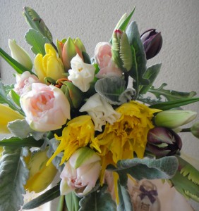 いろいろな種類のチューリップを組み合わせたり