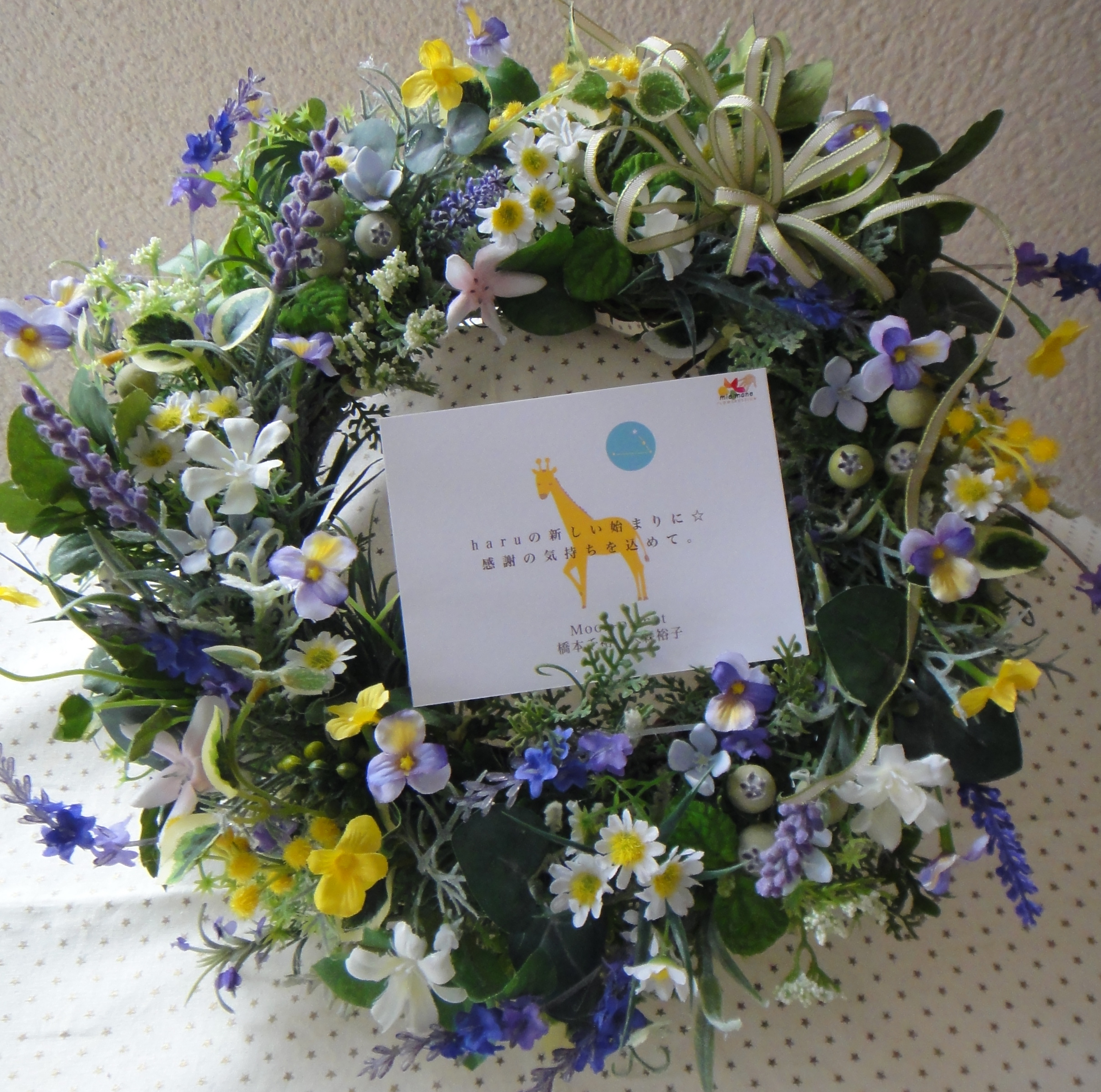 ナチュラルなイメージのリースをお作りいたしました。
