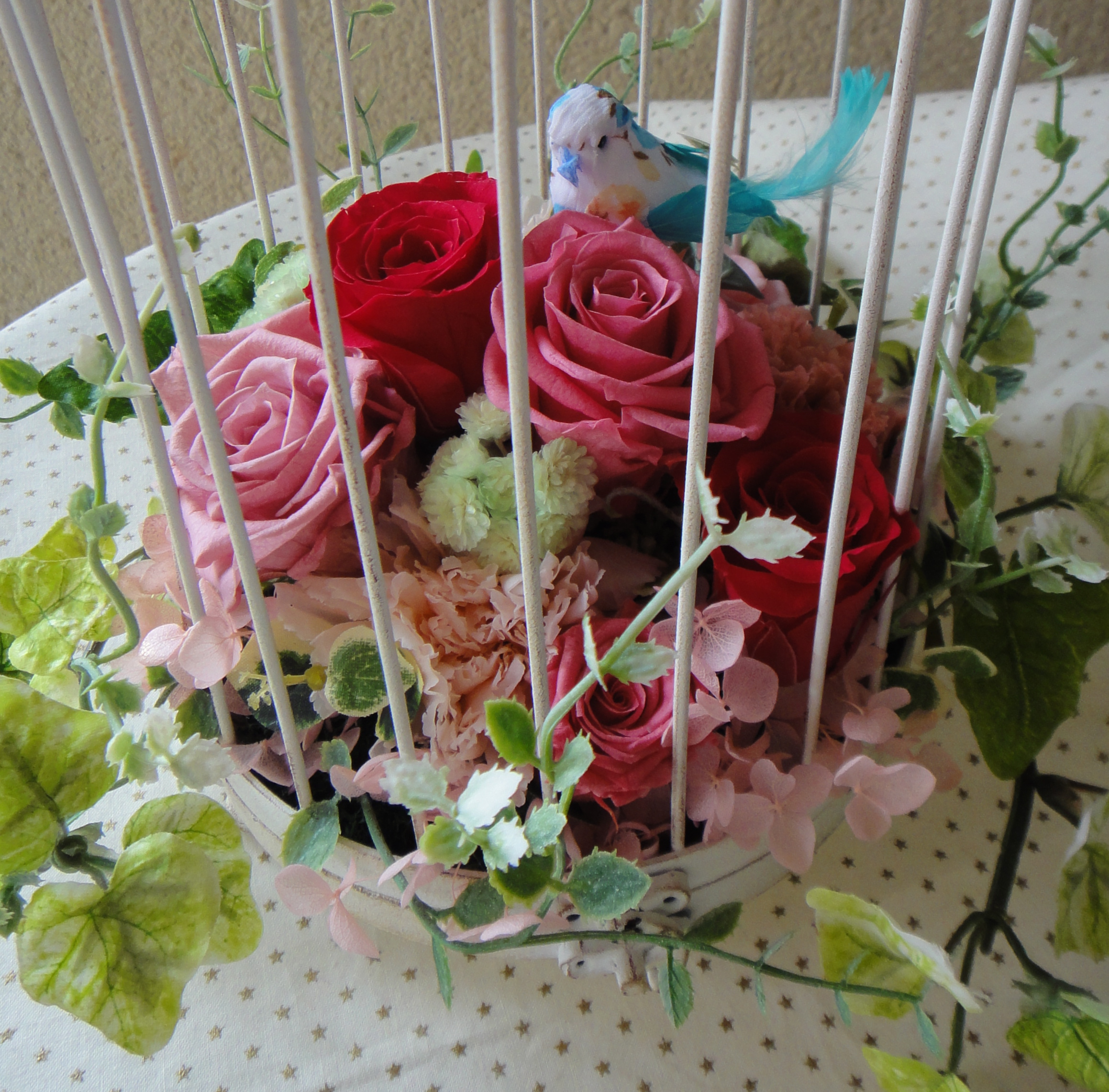 鳥かご☆プリザーブドフラワーで!