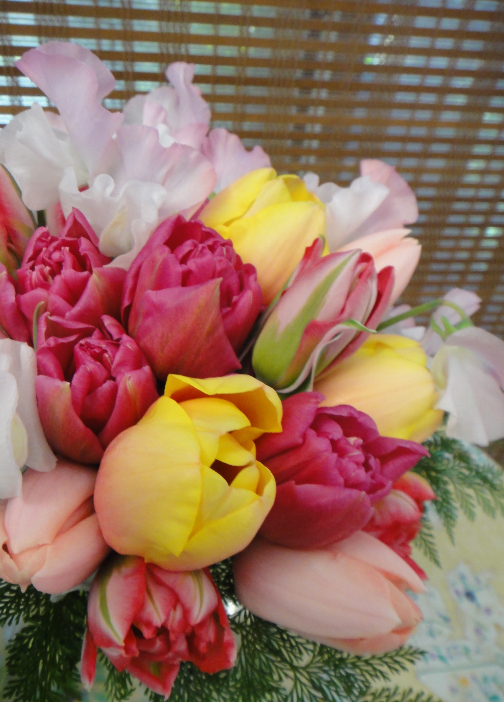 外側に入れたスイトピーが