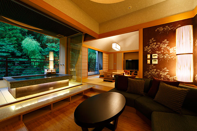 温泉に入って