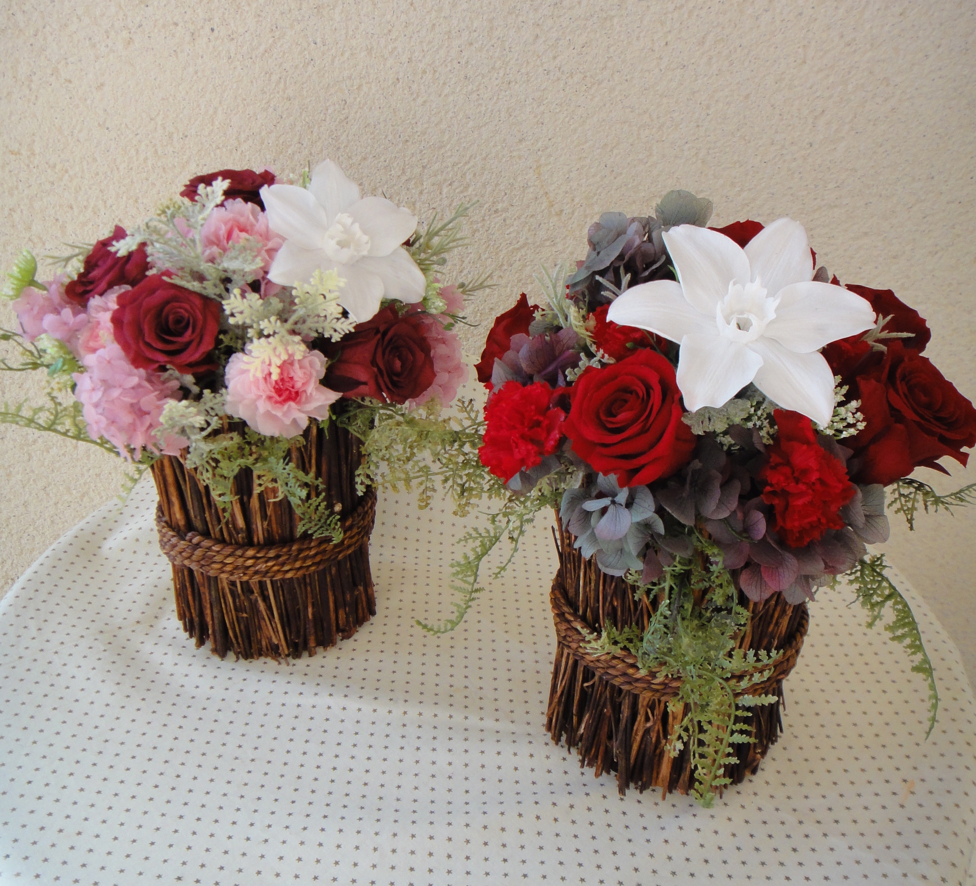 赤系のアレンジとピンク系のアレンジを試作しました☆