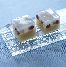 白いういろうに小豆をのせた