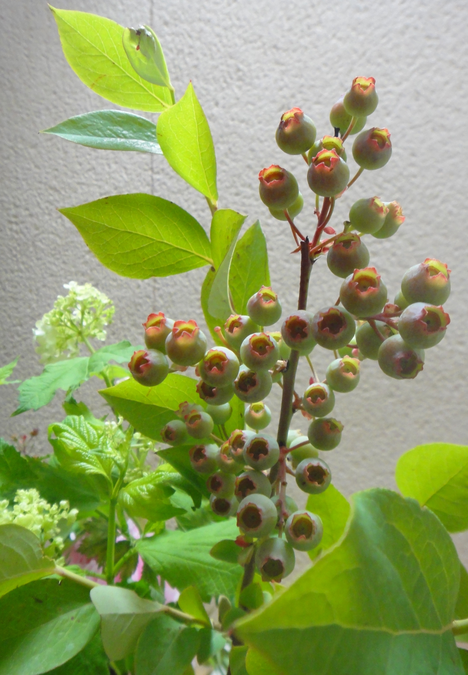 ブルーベリーのみどり色の固い実が