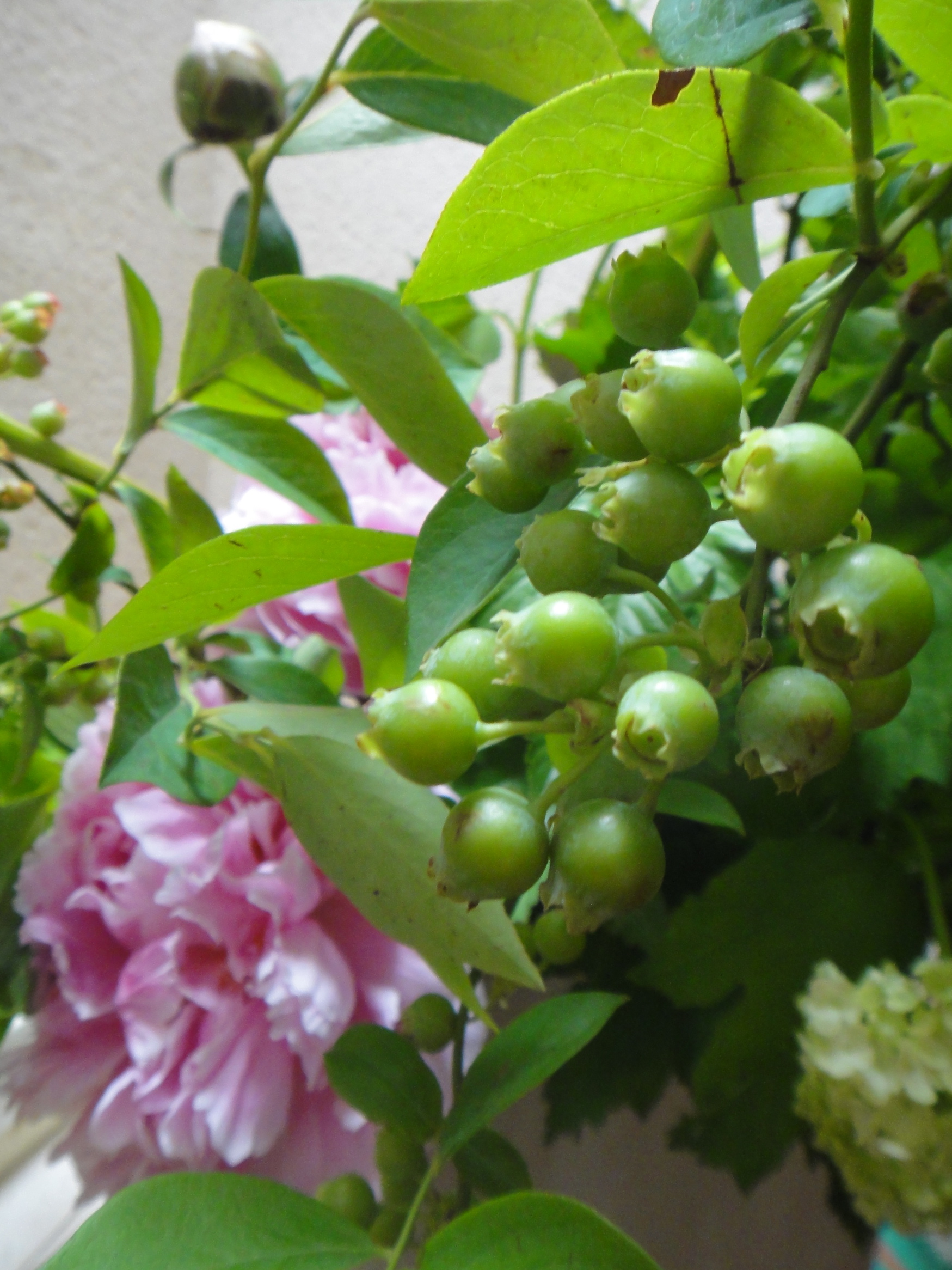ピンクの芍薬とブルーベリーをお届けしました
