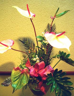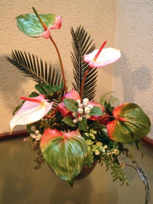 いろいろなグリーンとアンスリュームがリアルでしょ。