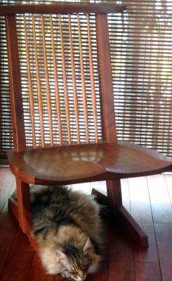 ジョージ・ナカシマの椅子の下でくつろぐマノ