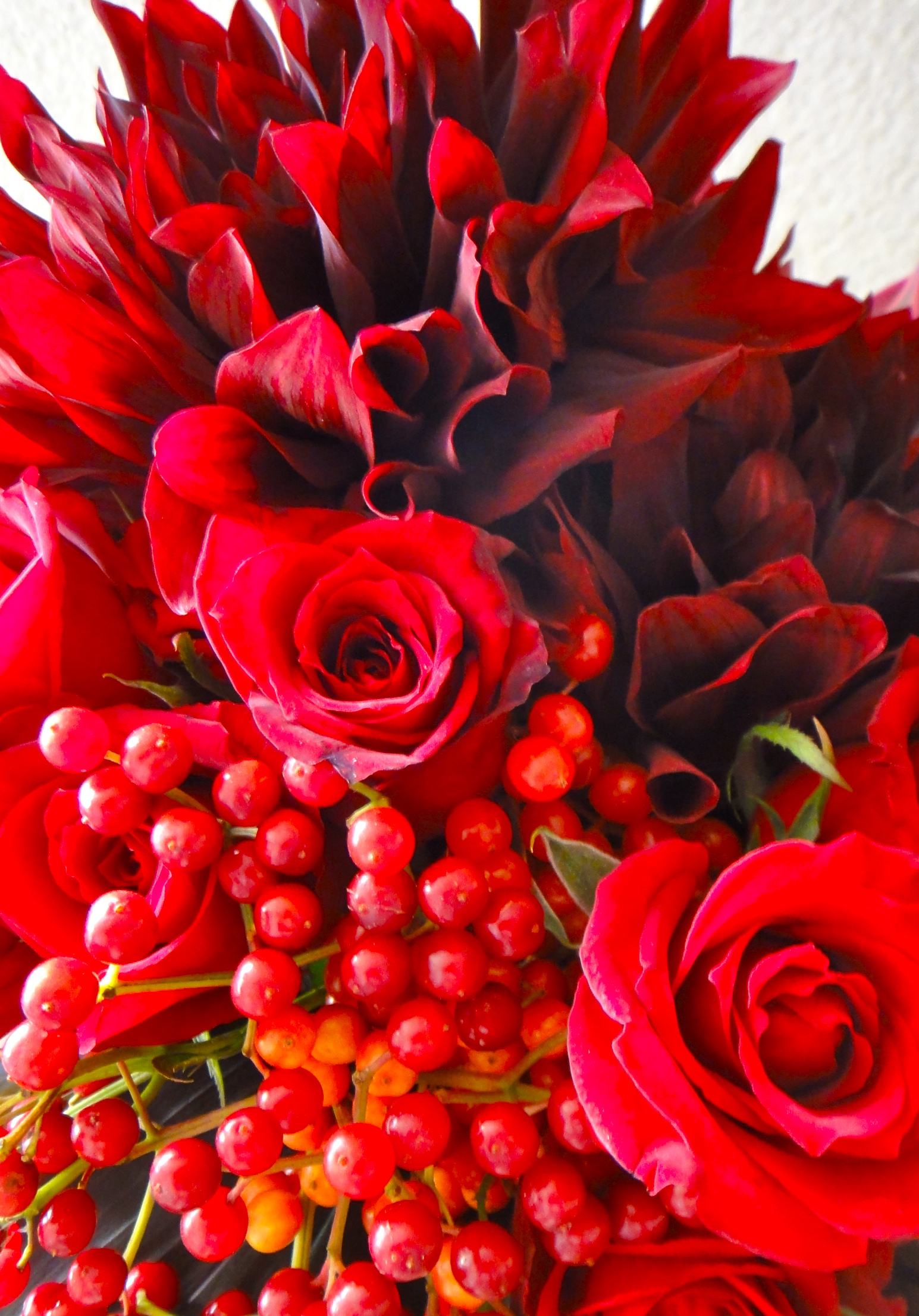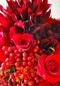 ヒペリカムと赤&濃いピンク色のお花を使って