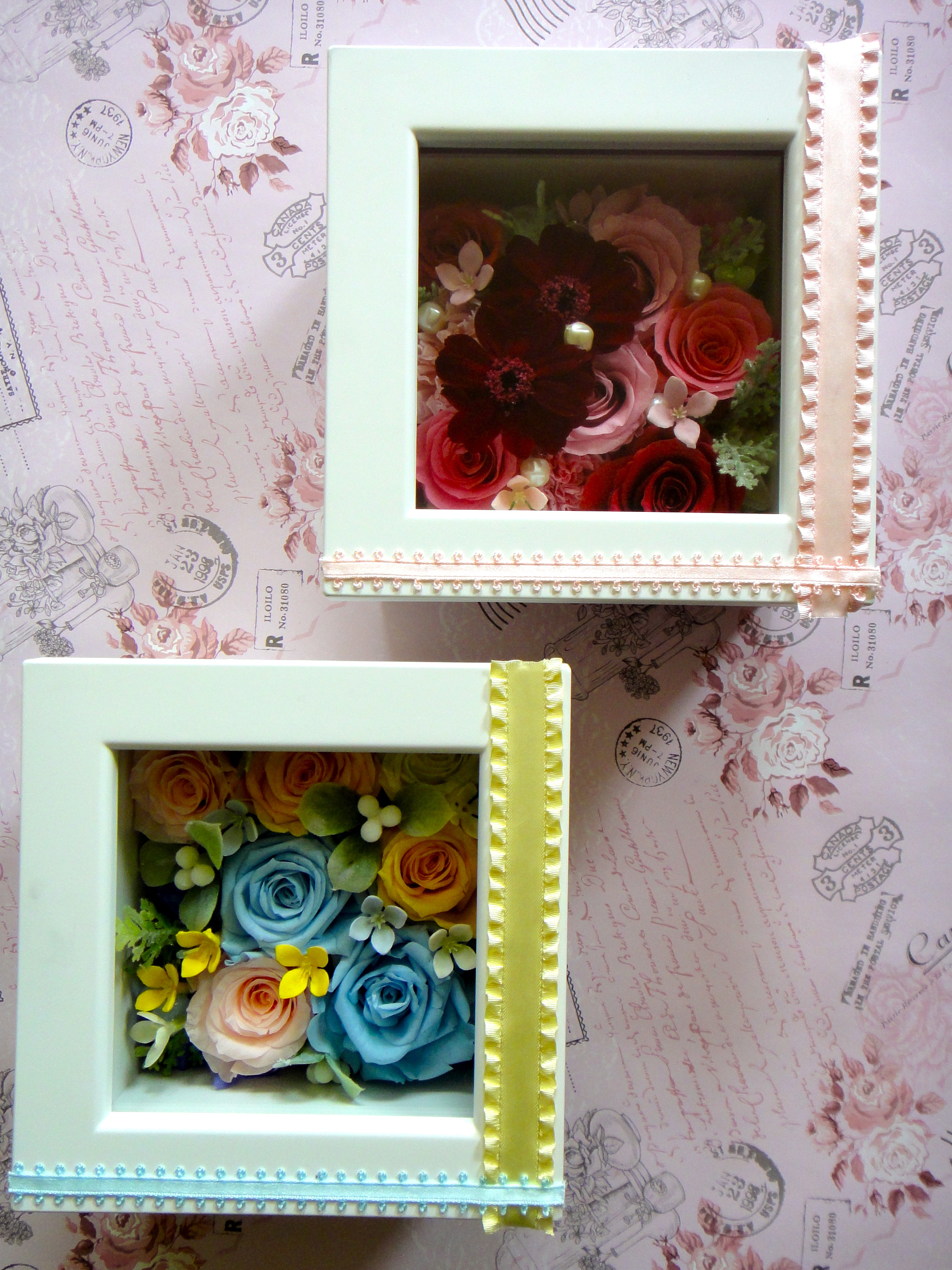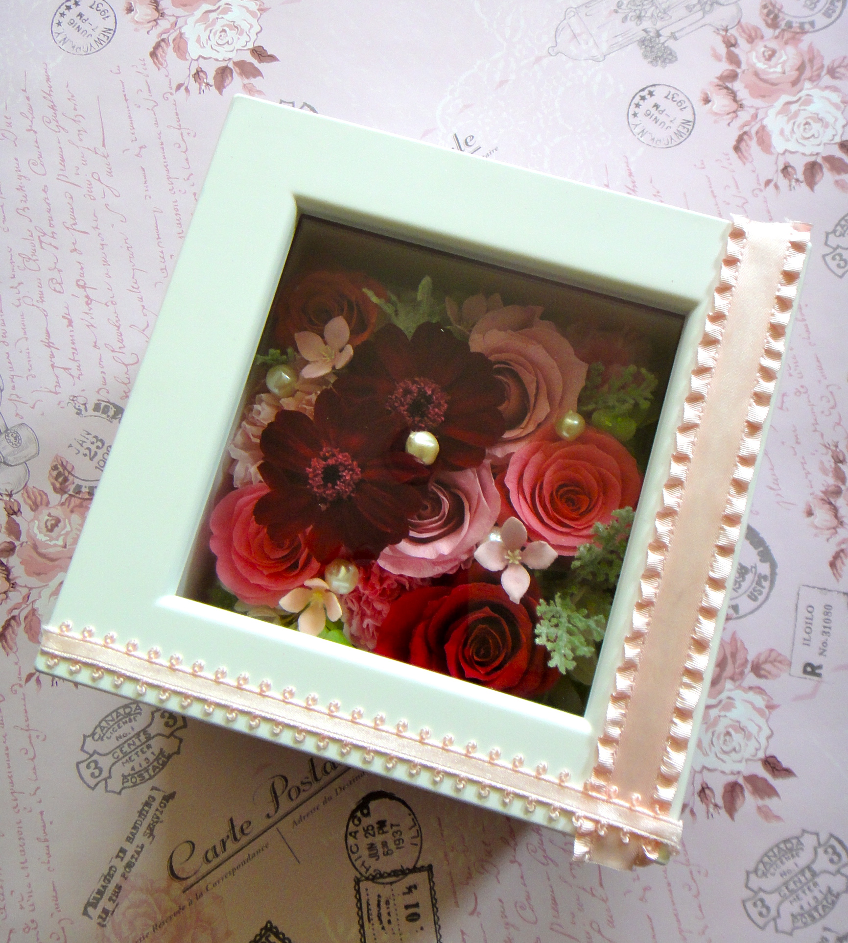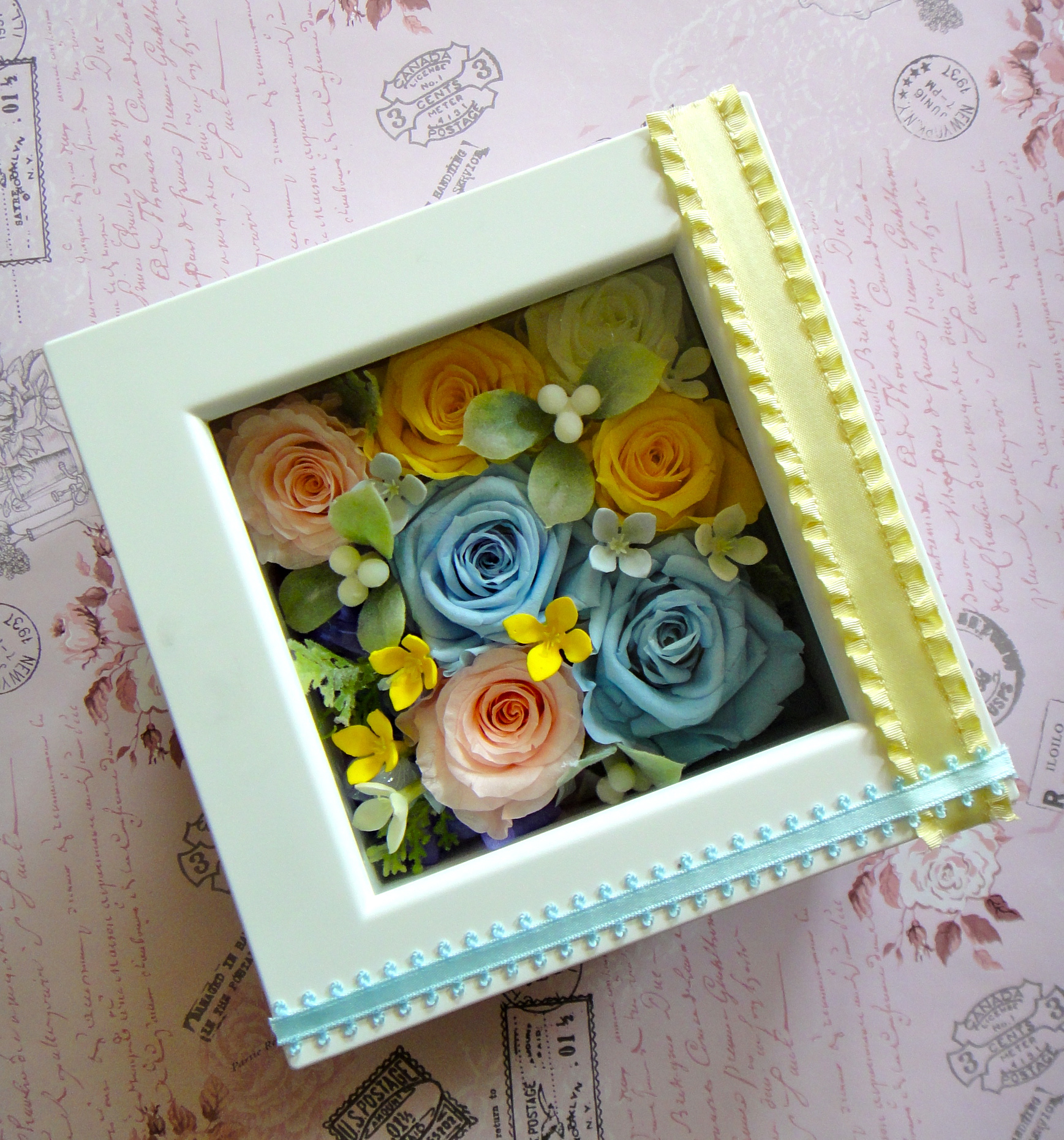 プリザーブドフラワーのフレームアレンジメントです。