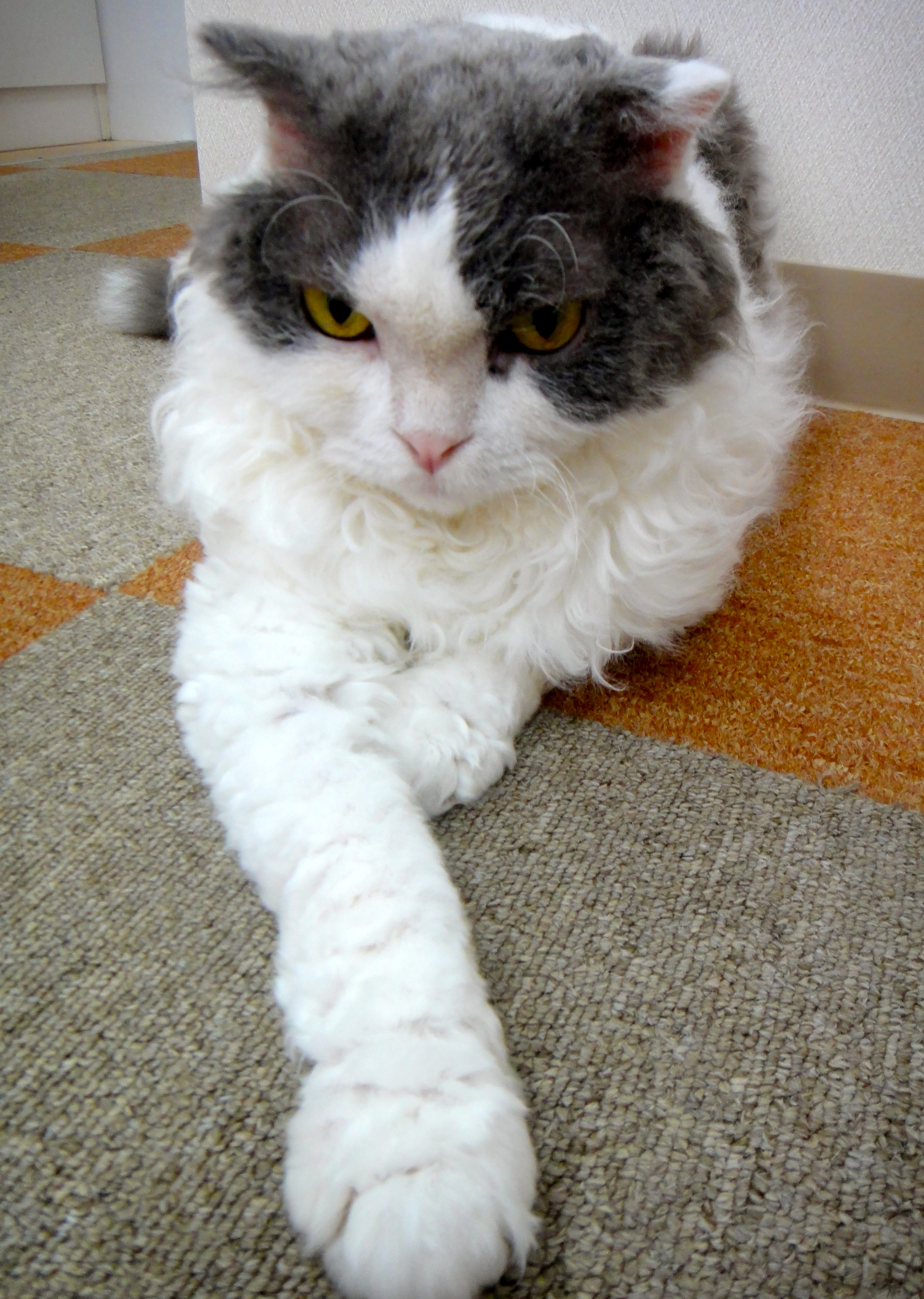 くるくるパーマのラムキン(セルカークレックス×マンチカン)の男の子