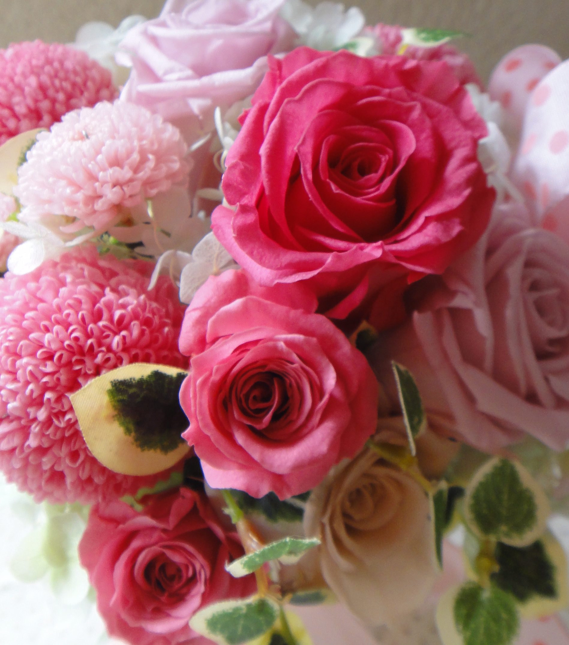 お母様からの贈り物のアレンジメントです。