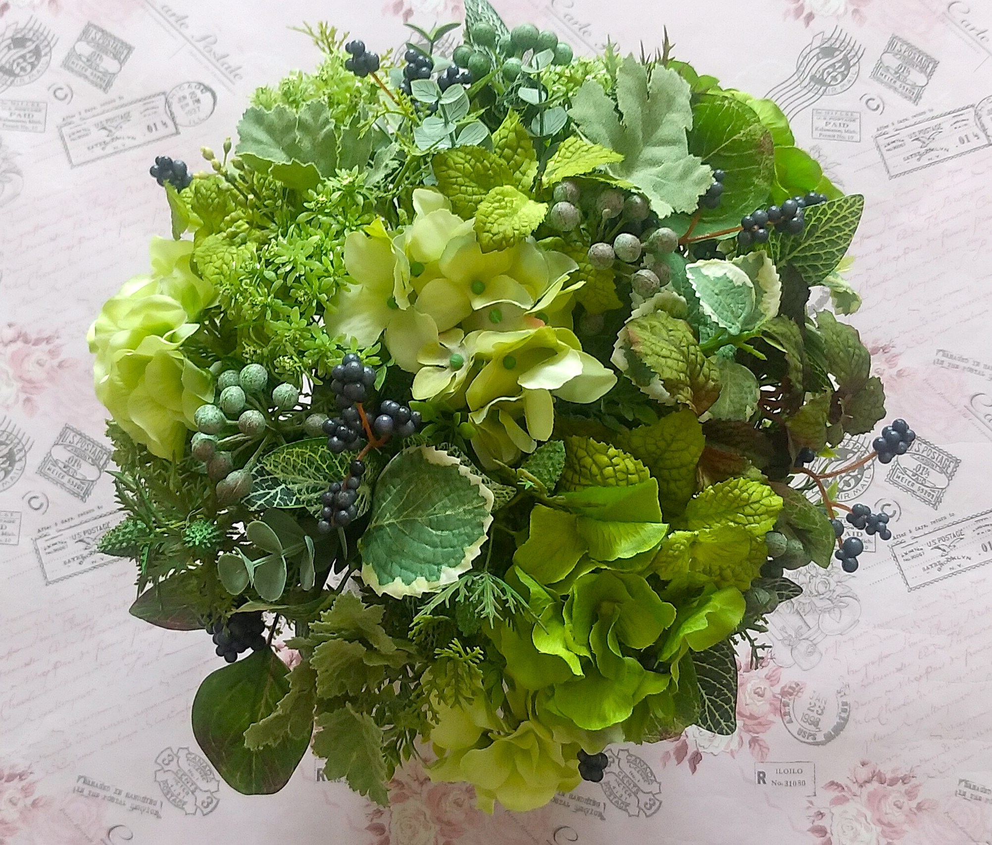 アーティフィシャルフラワーのグリーンと実もので作った