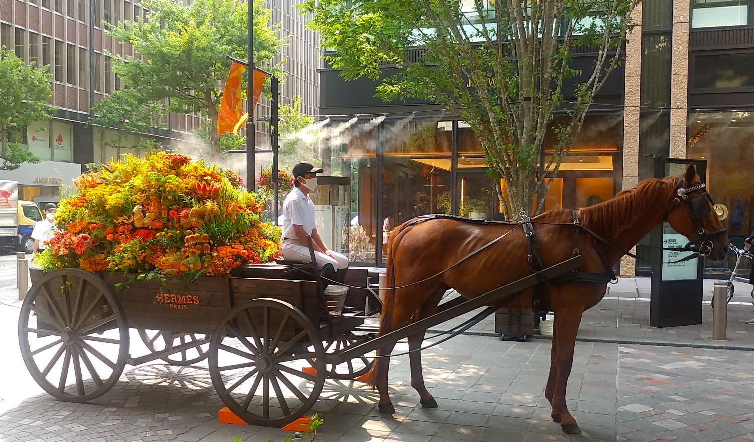お花を積んだ馬車に出会えました♡