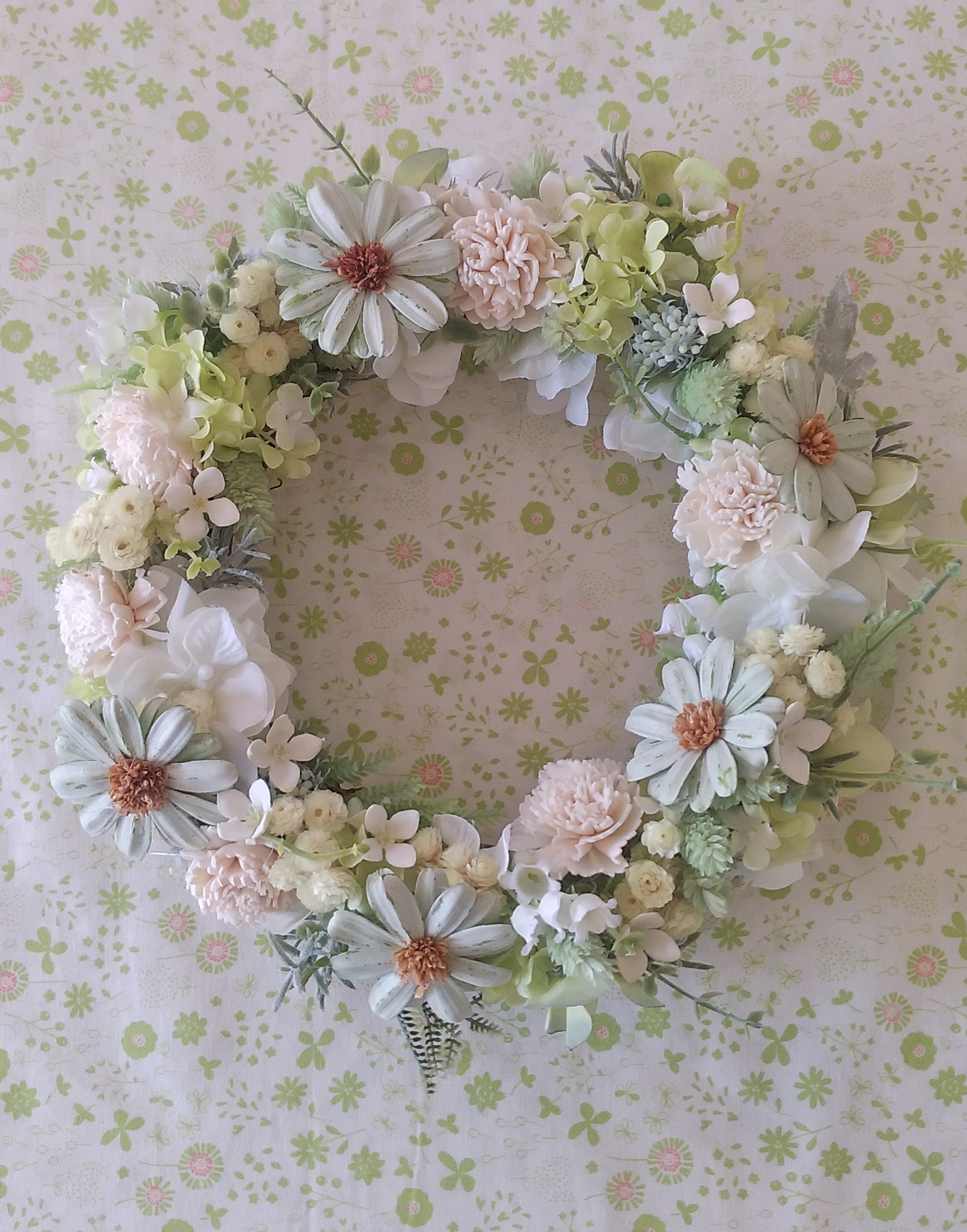 柔らかく軽やかなイメージのリースに仕上げました♡