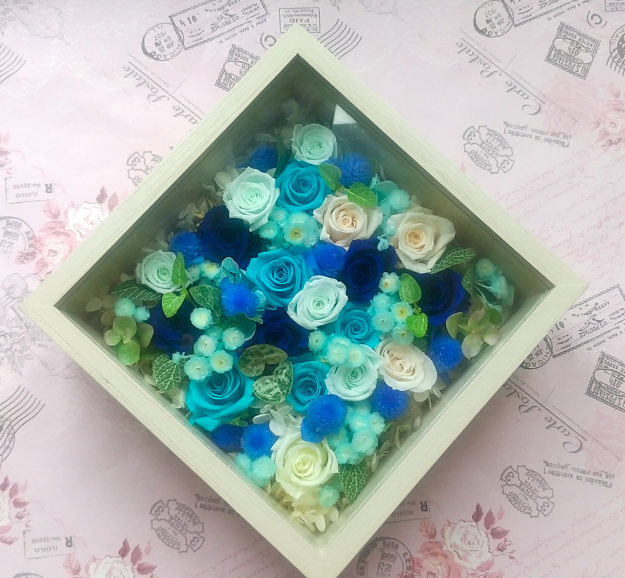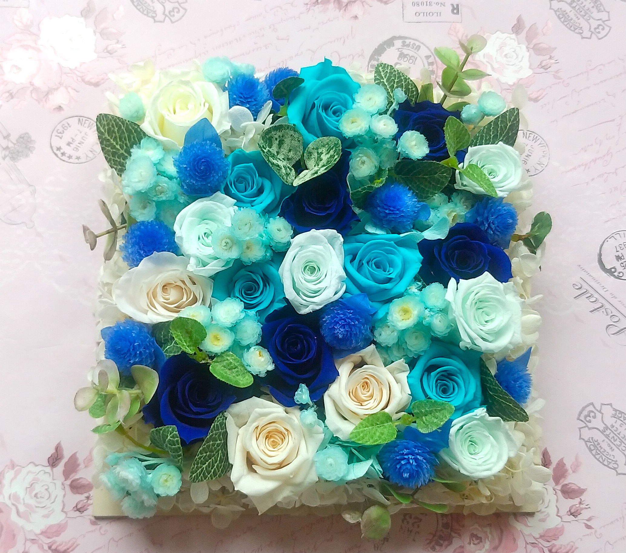 今回もフレームを使ったアレンジメントをお作りいたしました。