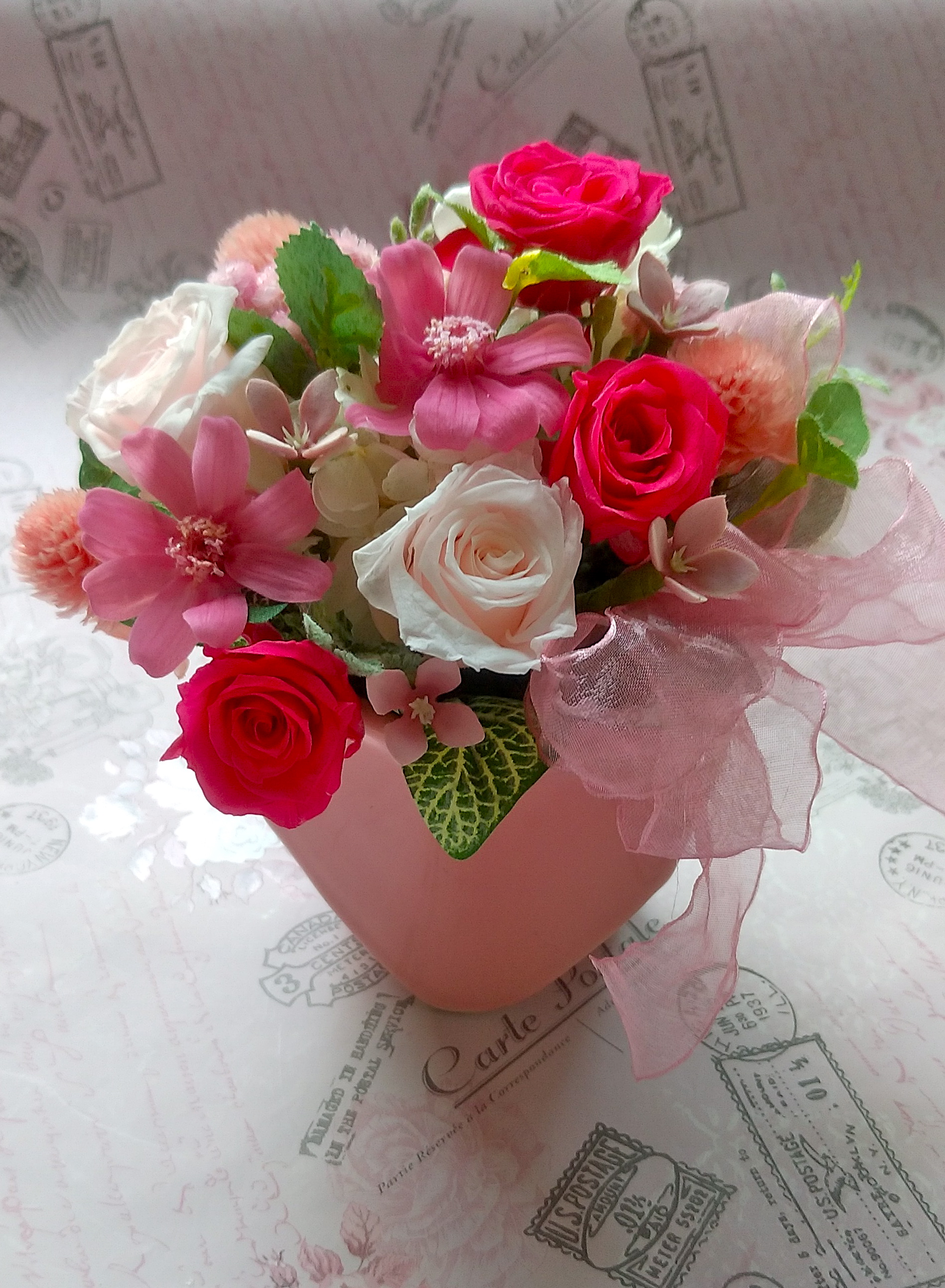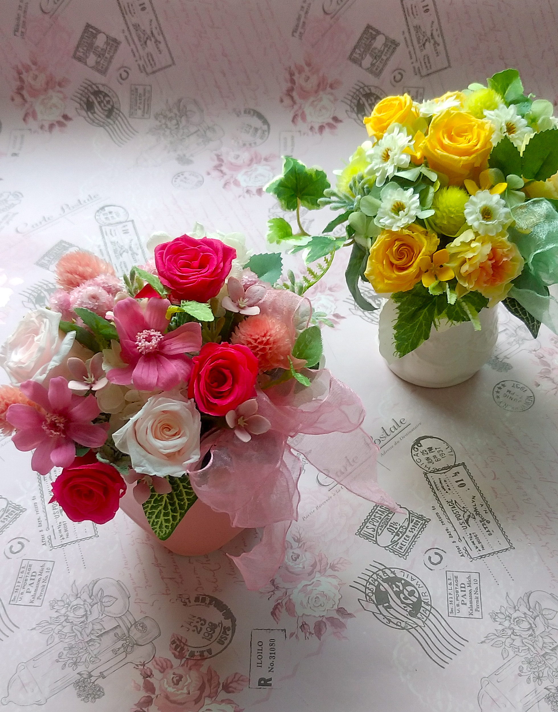ピンク色と黄色のアレンジでした〜ぁ( •ॢ◡-ॢ)-♡