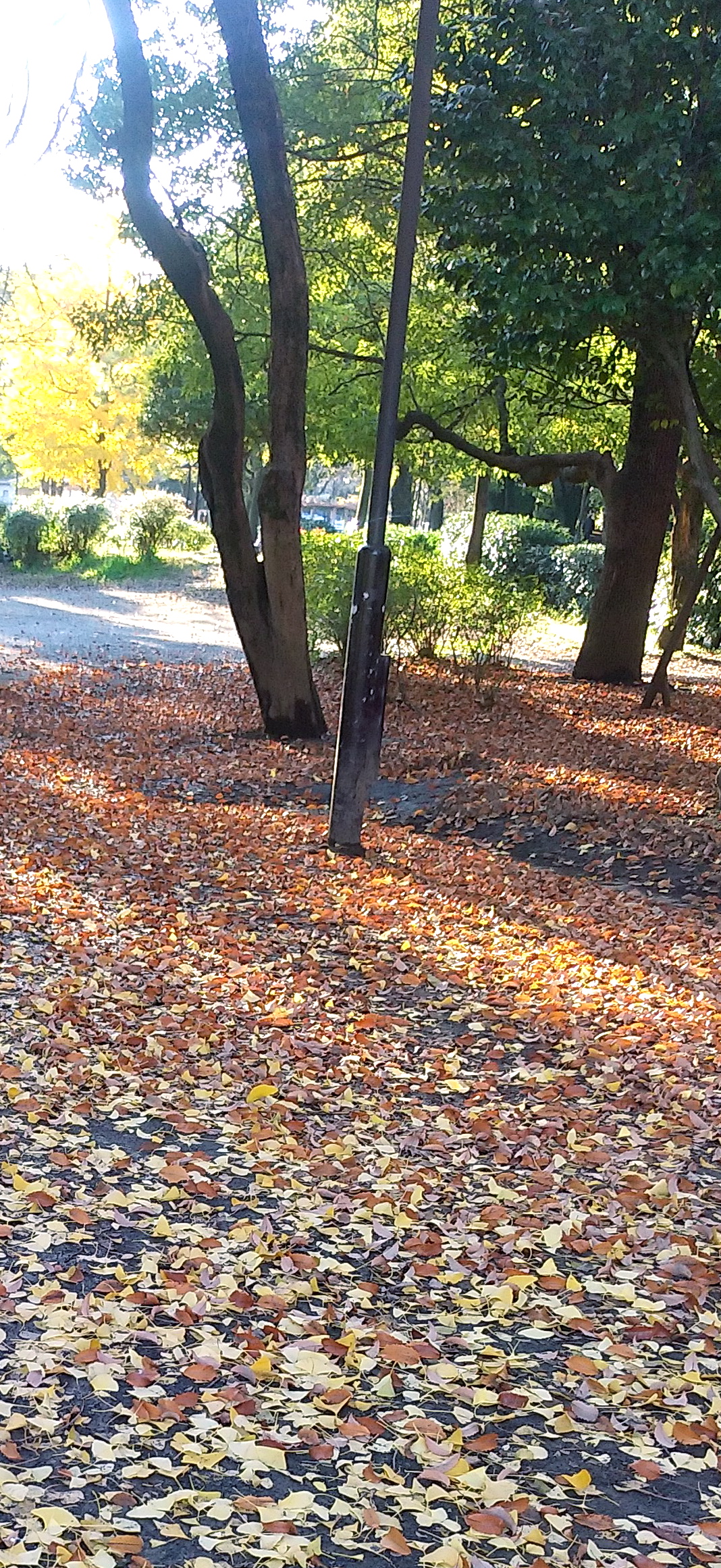 戸山公園の紅葉と葉っぱの絨毯です。