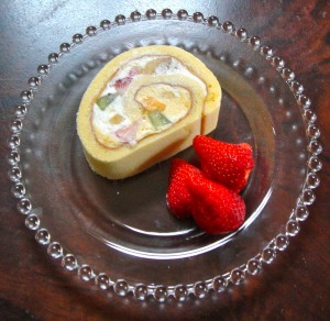ふんわりとしたスポンジで 季節のフルーツをたっぷりと巻き込んだ トライフルロール♡ おいしいです。