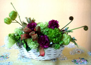 素朴な感じのバスケットになごりの春のお花をアレンジしていただきました。