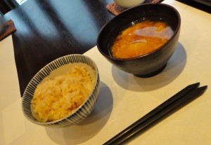 ごぼうの炊き込みごはん 米味噌のみそ汁(じゃがいもが入ってました)