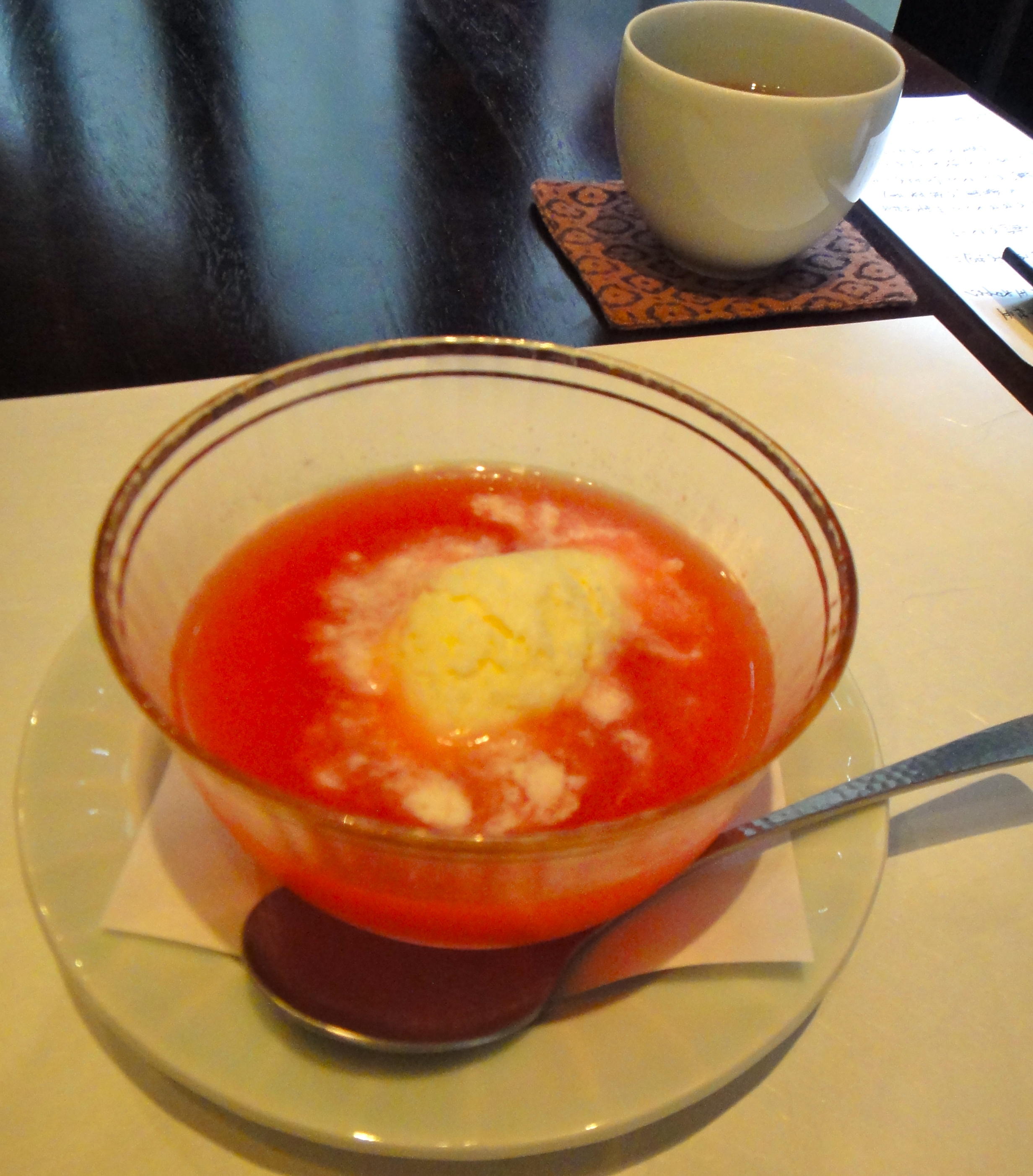 スイカのスープにバニラアイスクリーム