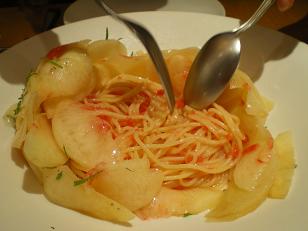 丸の内のグットドール・クラッティーニの冷たい桃のスパゲッティーニ