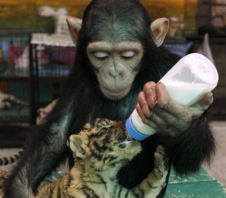 抱きかかえるようしながらミルクを飲ませているのだという。