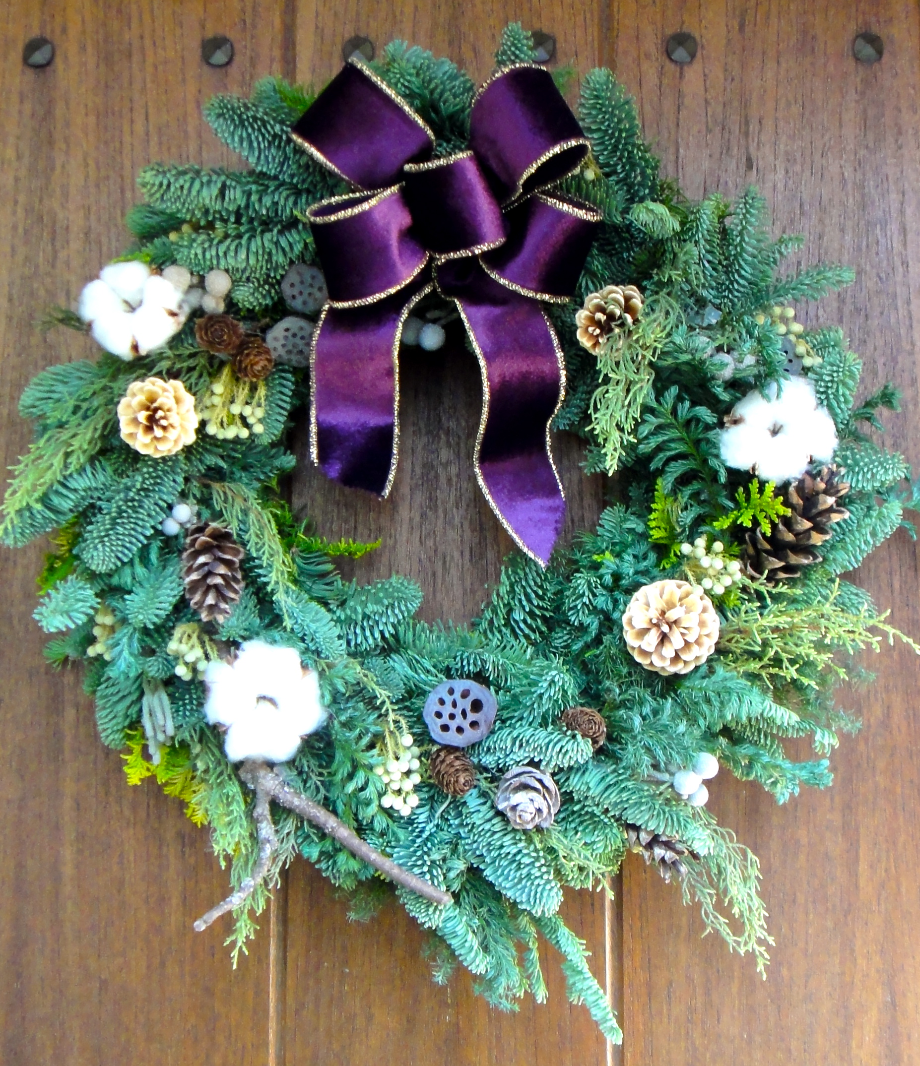 『森の香りのリース(オレゴンモミといろいろコニファーのリース)