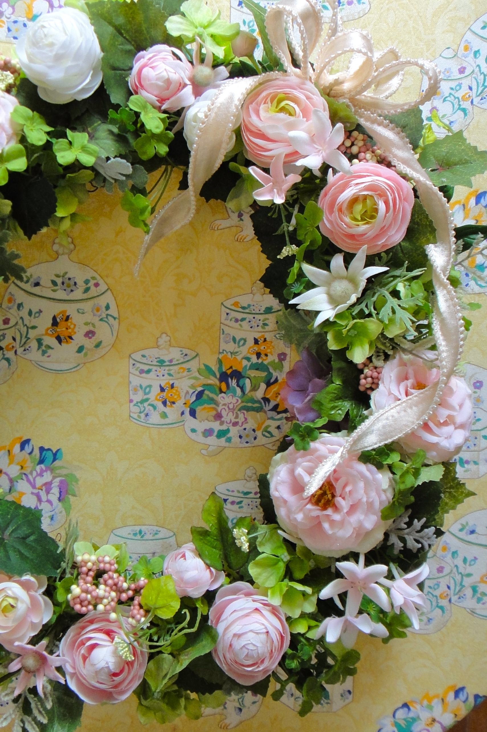 柔らかい癒し系のリースをお作りいたしました。